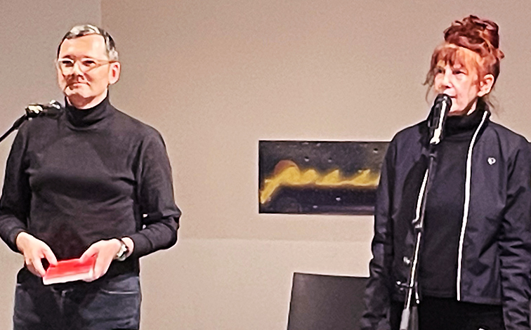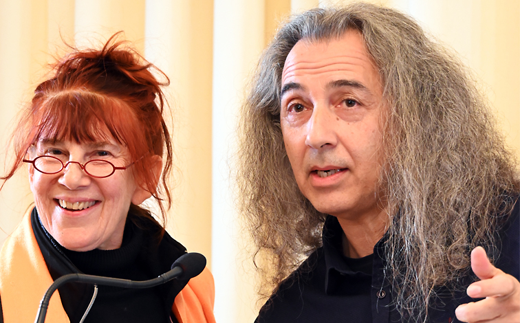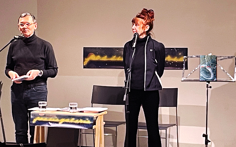 Die Herausgeberin und Dichterin und Semier Insayif trugen einen Auszug aus ihrem Dialog fugen .genau vor. © Peter Bock
