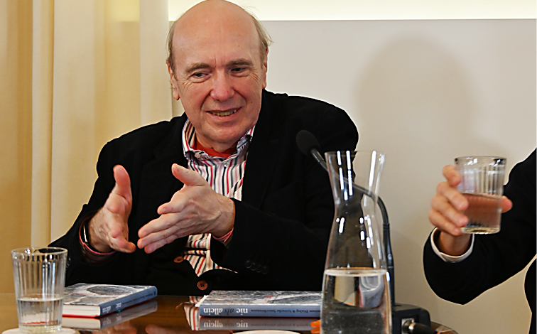 Renate Resch erläutert diskurstheoretische Sichtweisen, wie sie die entstandenen Dialoge auf Dialogizität untersuchte und erzählt über die Herausforderungen bei lyrischen Textwerken. © Peter Bock